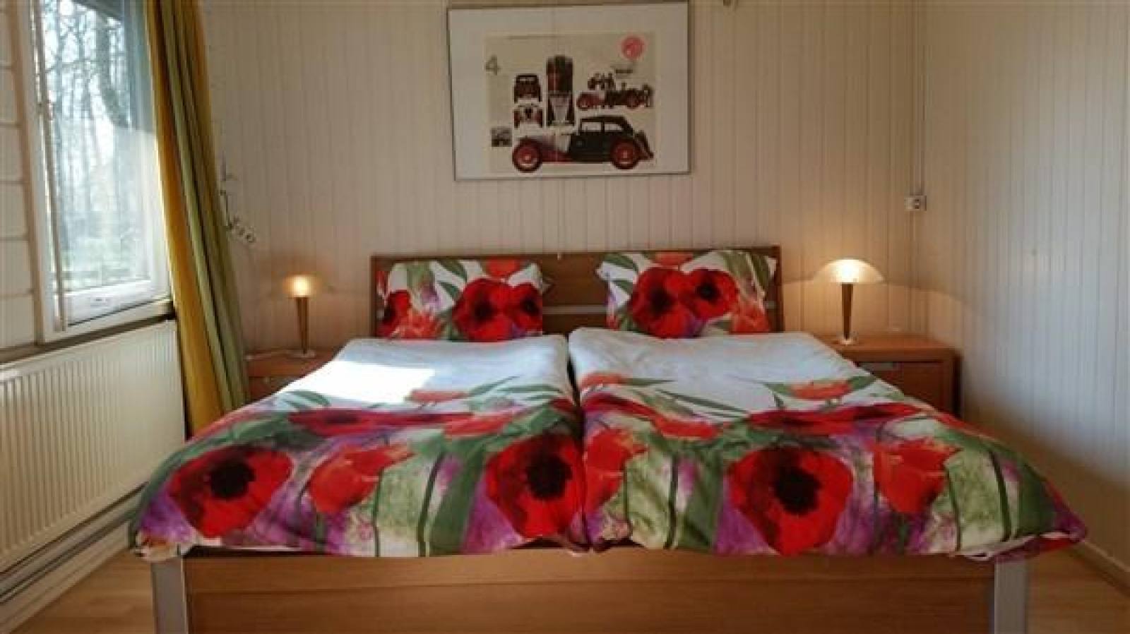 The holiday home has one bedroom with a double bed and a closet wall and duvets. The bathroom has a shower and sink. The holiday home has one separate toilet. When you go outside you can relax on the partly covered terrace, facing south, offering a fantastic and spacious view of the immediate surroundings. The house is fully equipped with central heating and a beech laminate floor. There is also fast internet available through the fiber optic connection.