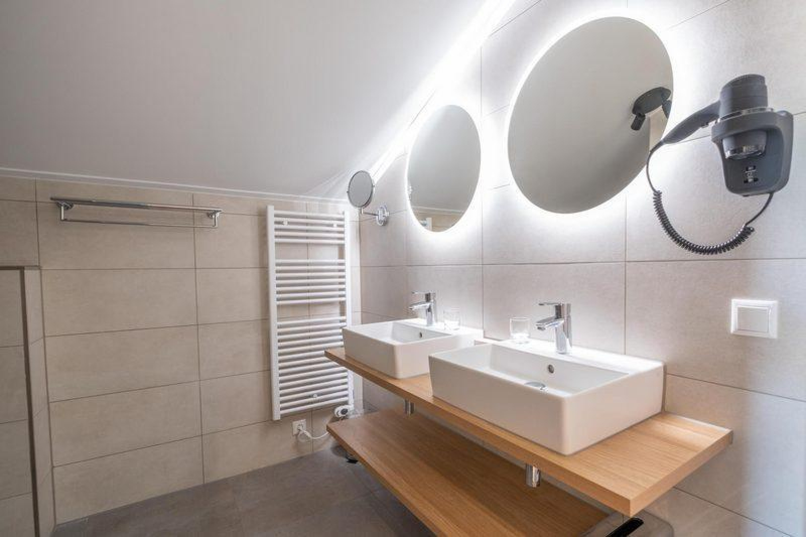 The stairs lead to the second floor. Here you will also find two bedrooms for two persons. One of these bedrooms has a bathtub and a balcony. On this floor there is also another bathroom with a shower and toilet.